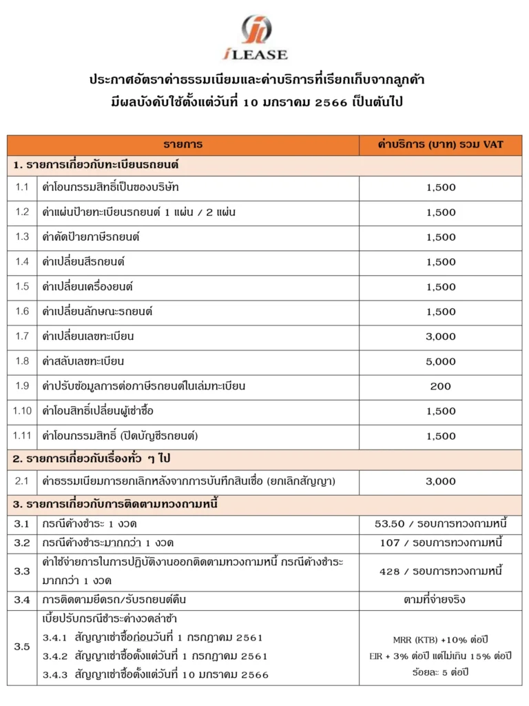 อัตราดอกเบี้ย/ค่าปรับ/ค่าบริการ/ค่าธรรมเนียมใดๆ ของสินเชื่อที่มีทะเบียนรถเป็นประกัน มีผลบังคับใช้ตั้งแต่วันที่ 10 มกราคม 2566 เป็นต้นไป